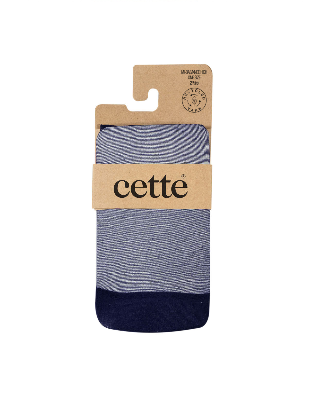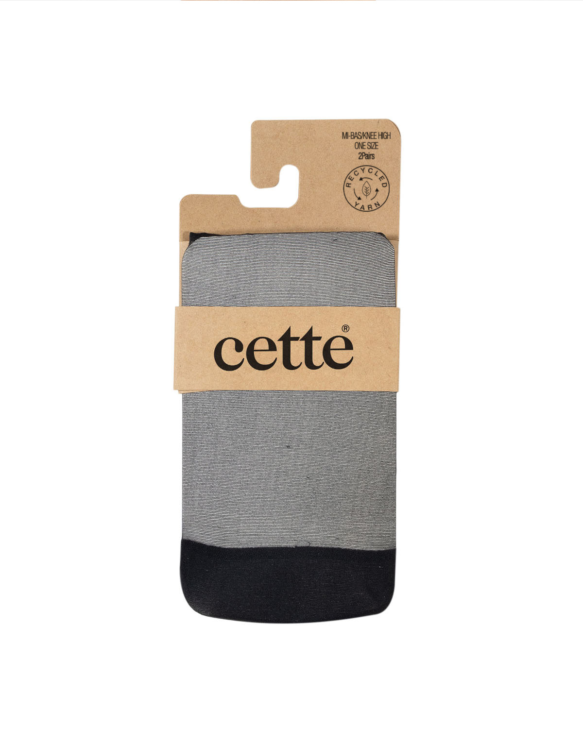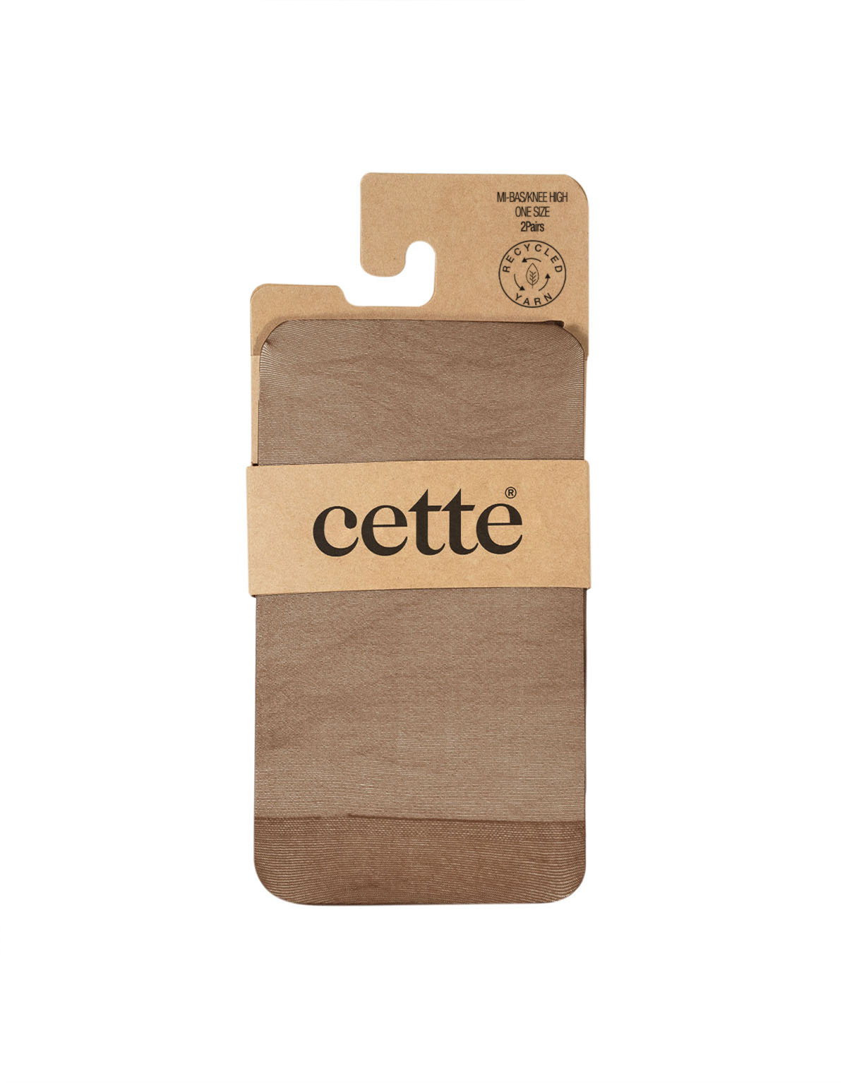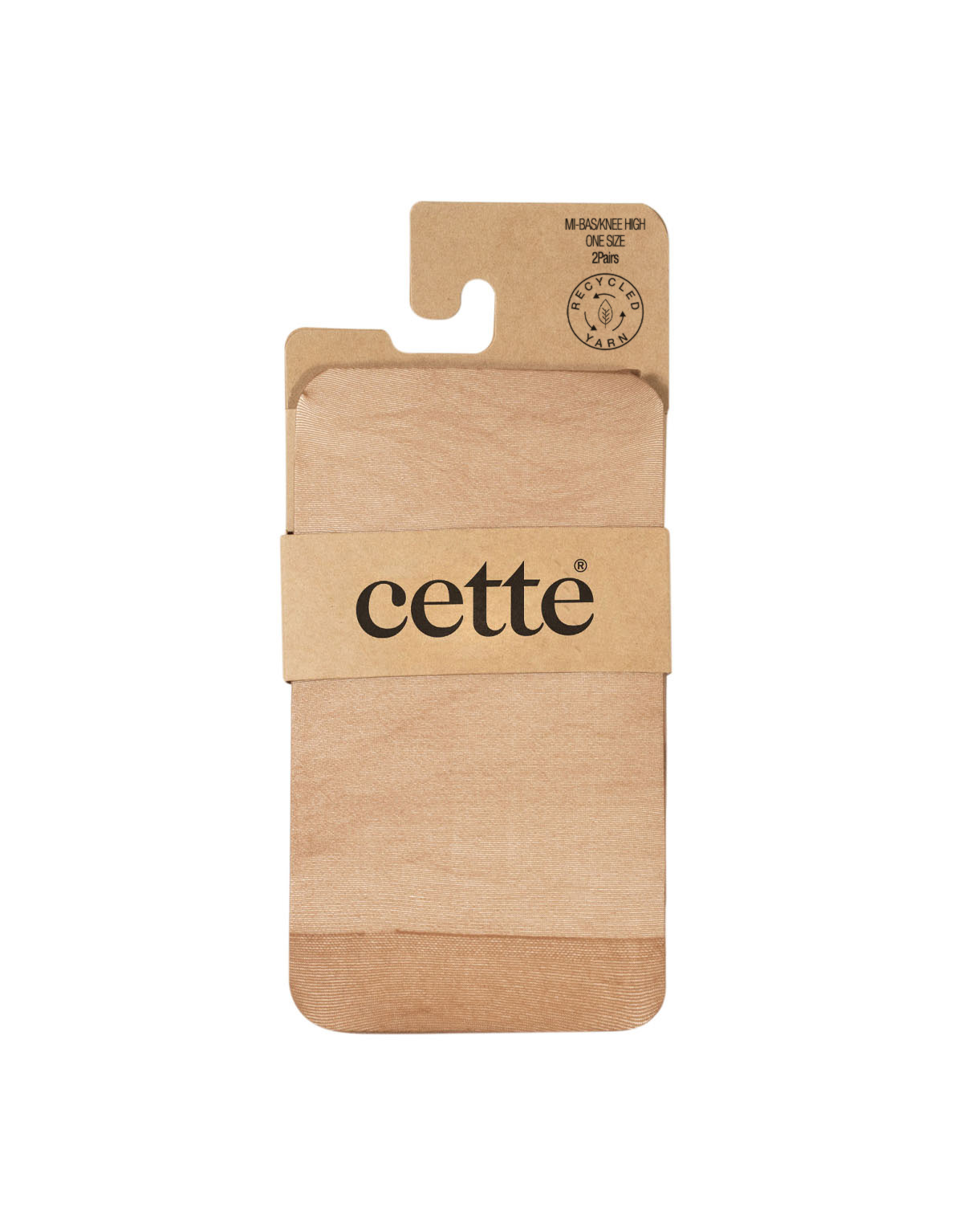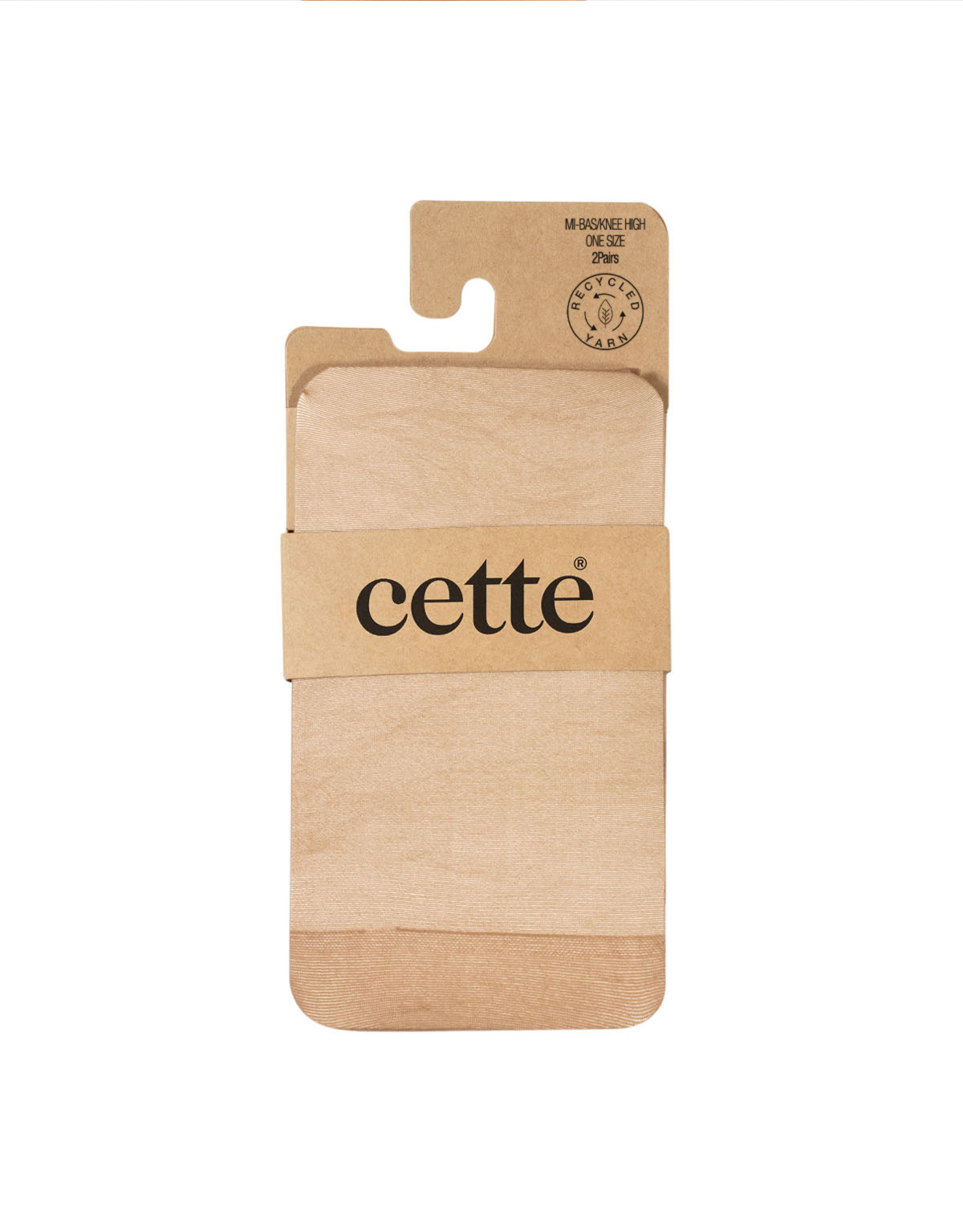 Crafted from recycled yarns, the knee-highs reflect Cette’s ongoing commitment to environmental responsibility without compromising on quality or style. The delicate, eco-conscious fabric delivers a silky, soft touch while providing subtle coverage that feels barely there on the skin.