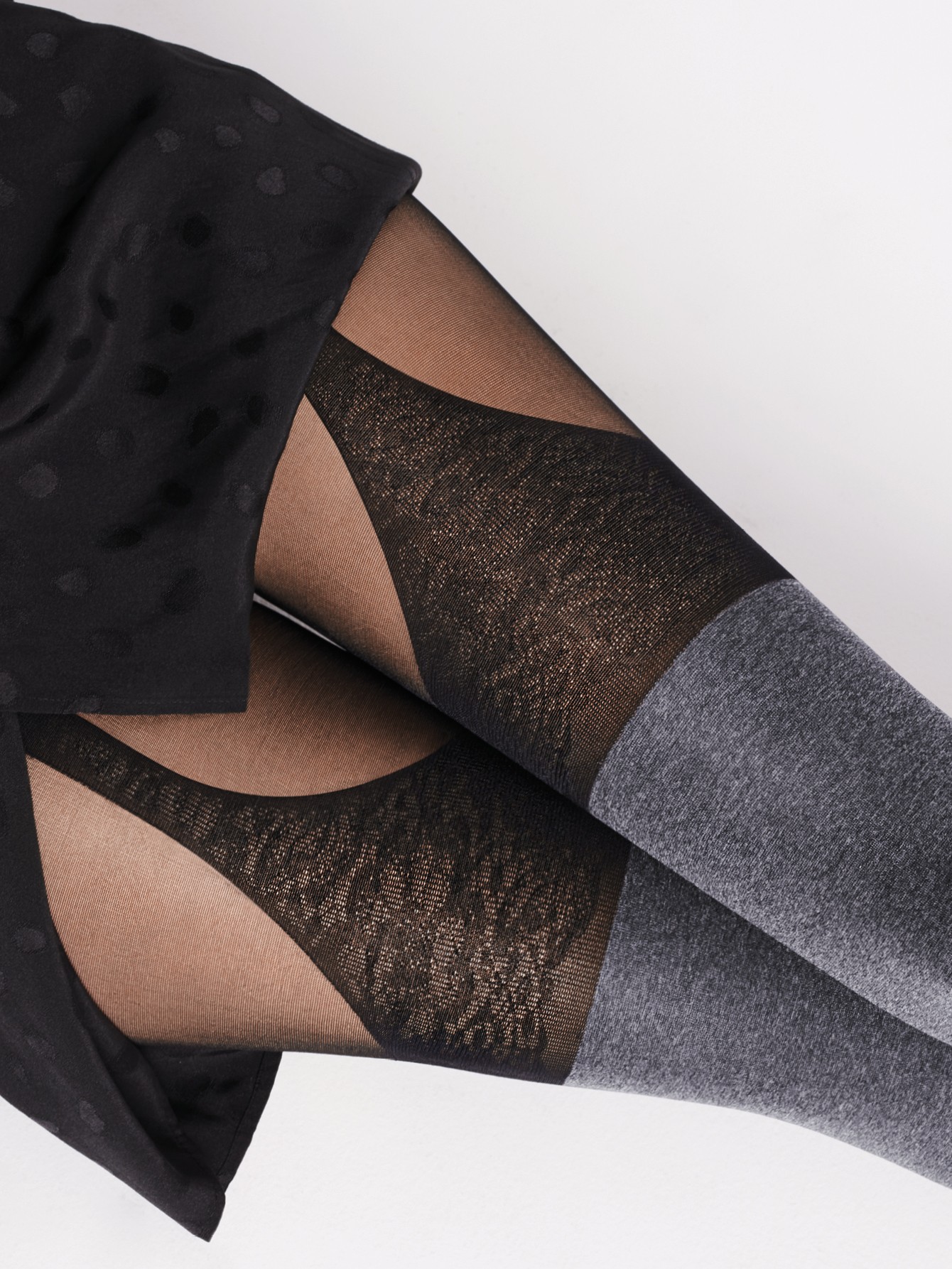 Italian SEGNORINA is full of character, that's why we got inspired by her and created this grey tights with an imitation of stockings. If you dare to wear a mini skirt, nobody would doubt your Italian character, but while wearing more subtle outfit, only a misterious smile can reveal it.
