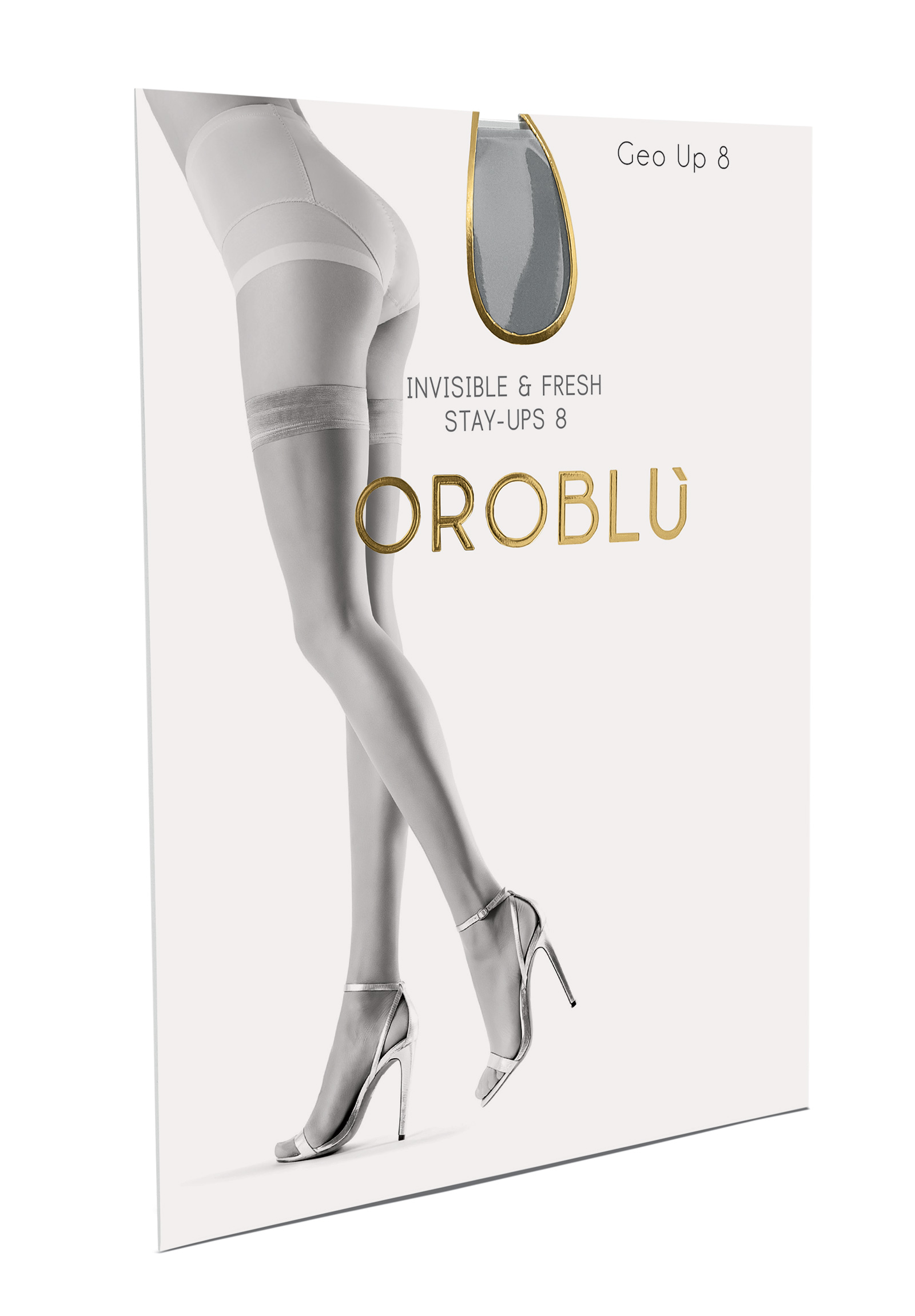 Summer hold ups with a matte, powdery finish that remain invisible thanks to their 8 denier construction. The 5 cm wide top band, with its elegant satin look, is smooth and totally invisible under the most close-fitting outfits. Two silicone strips on the inside ensure a perfect fit. The toes are transparent, making them ideal for open shoes. These hold-ups are perfect for anyone looking for a great alternative to summer tights. Proper care is essential with these hold ups, as the silicone must be kept clean to maintain a good fit. Creams and powders can reduce the grip. Women with particularly slender thighs don't have to forgo these hold-ups; they can also be worn with a garter belt.