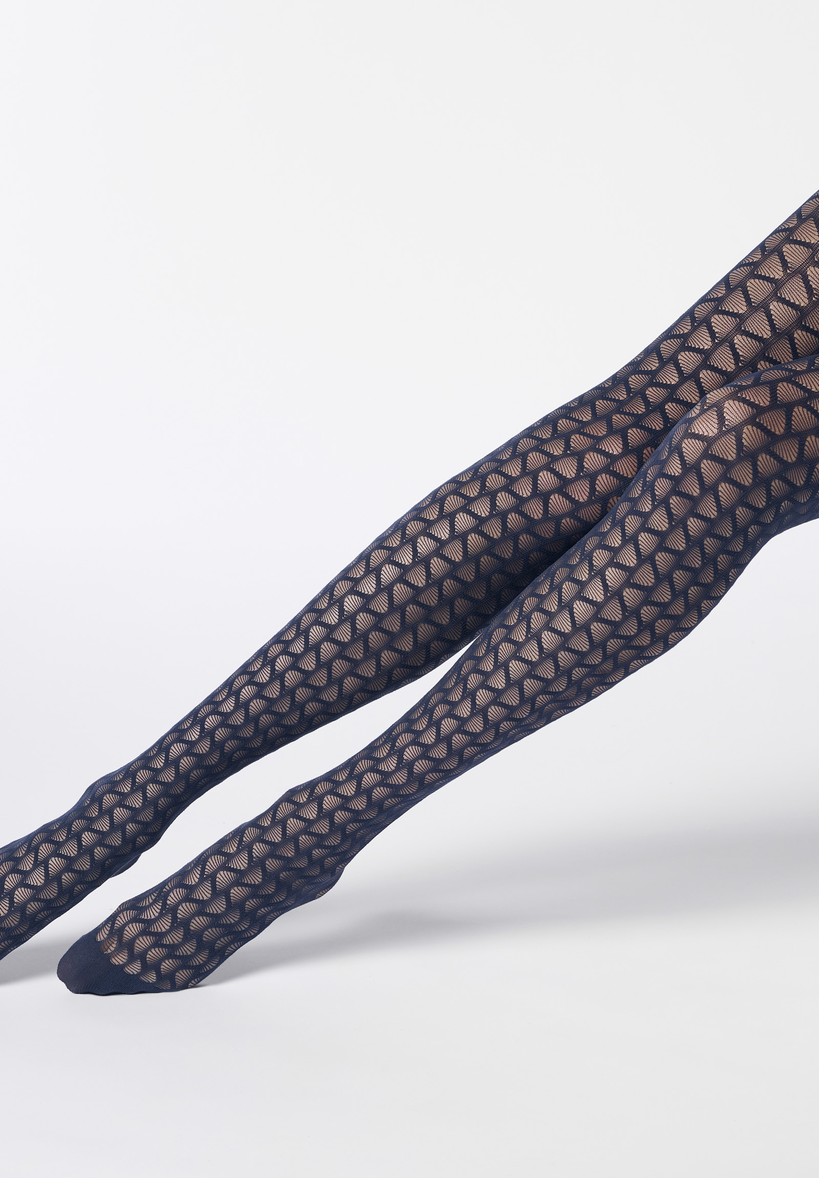 Semi-opaque tights with striped look and graphic wave pattern.