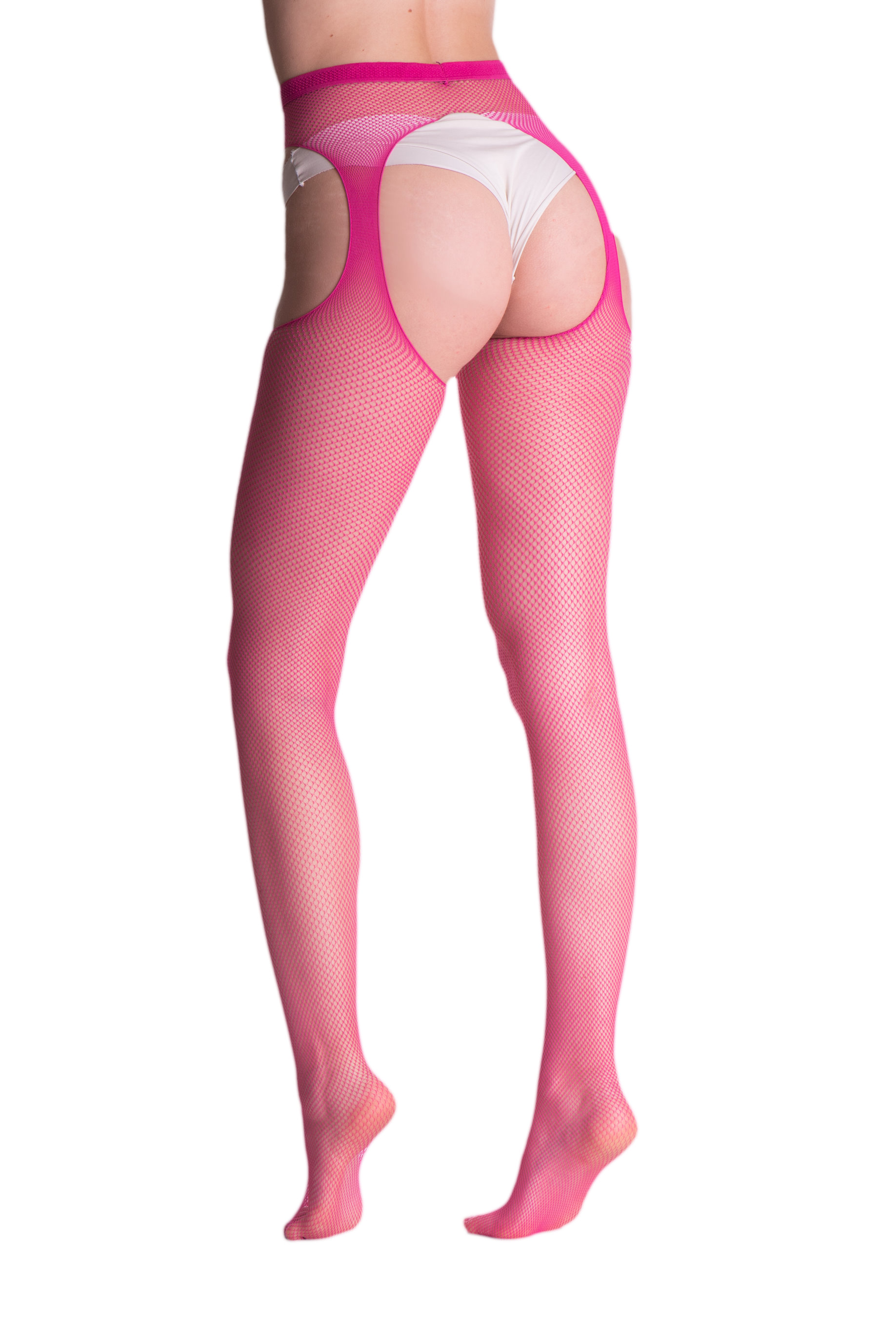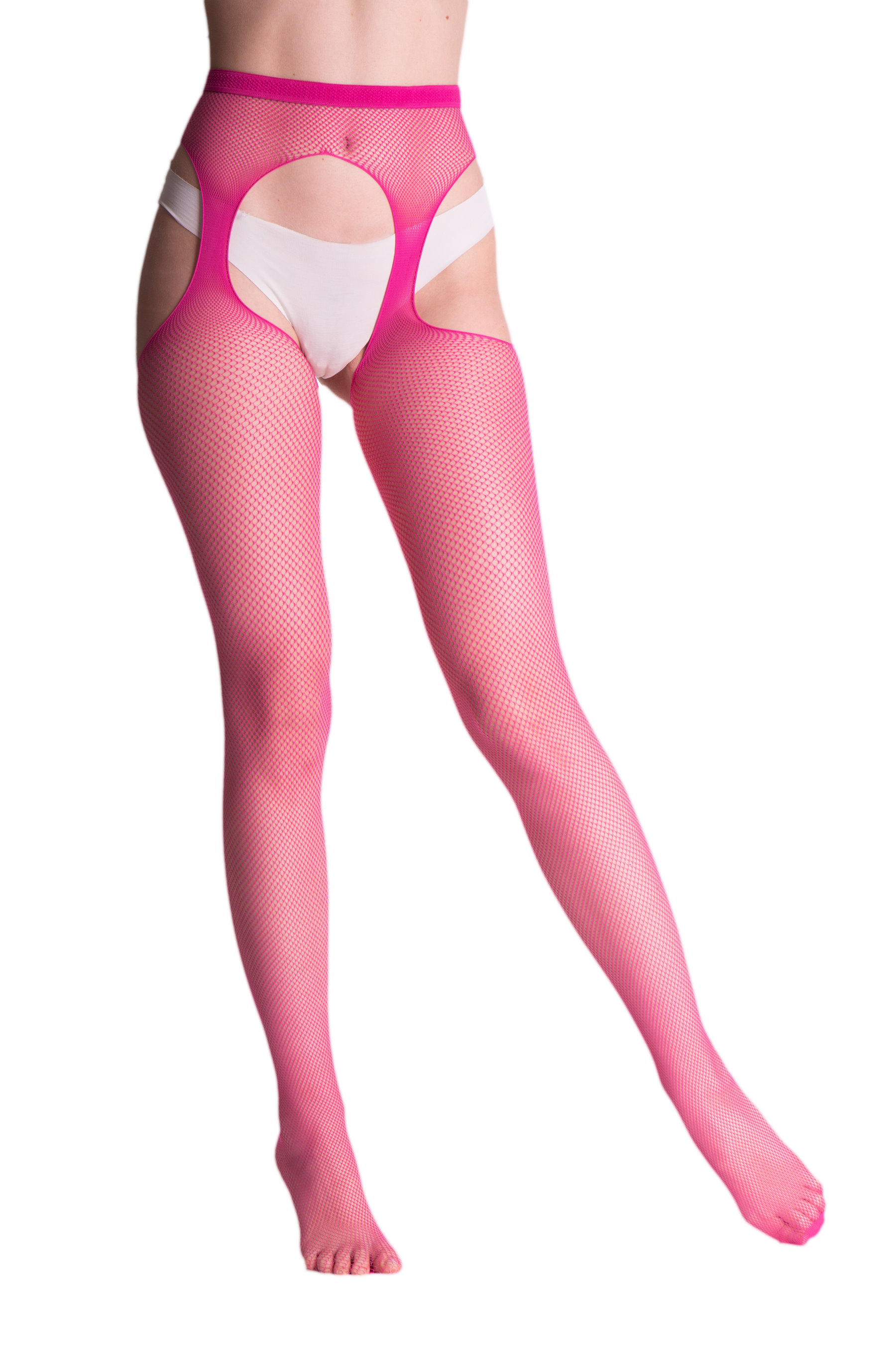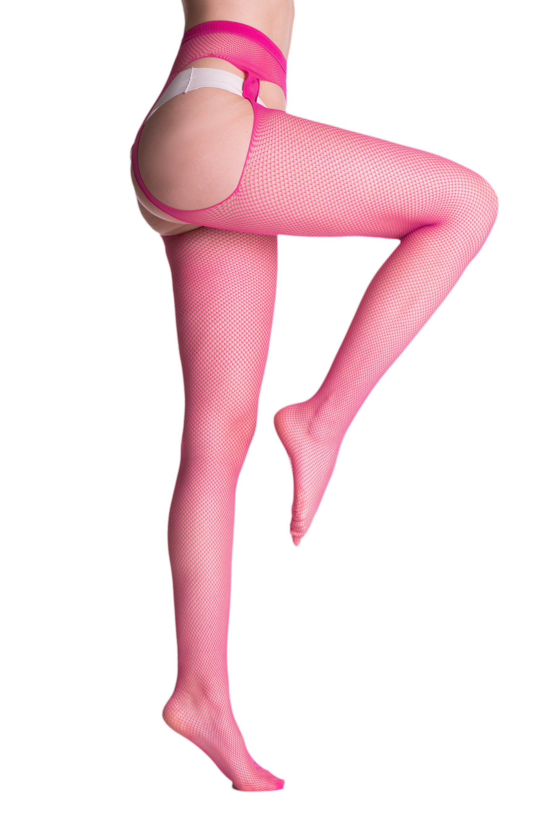 Sensuous fishnet suspender tights, very soft, with subtle reinforced toes. So comfortable and easy to wear as your everyday tights, and so seductive as stockings!