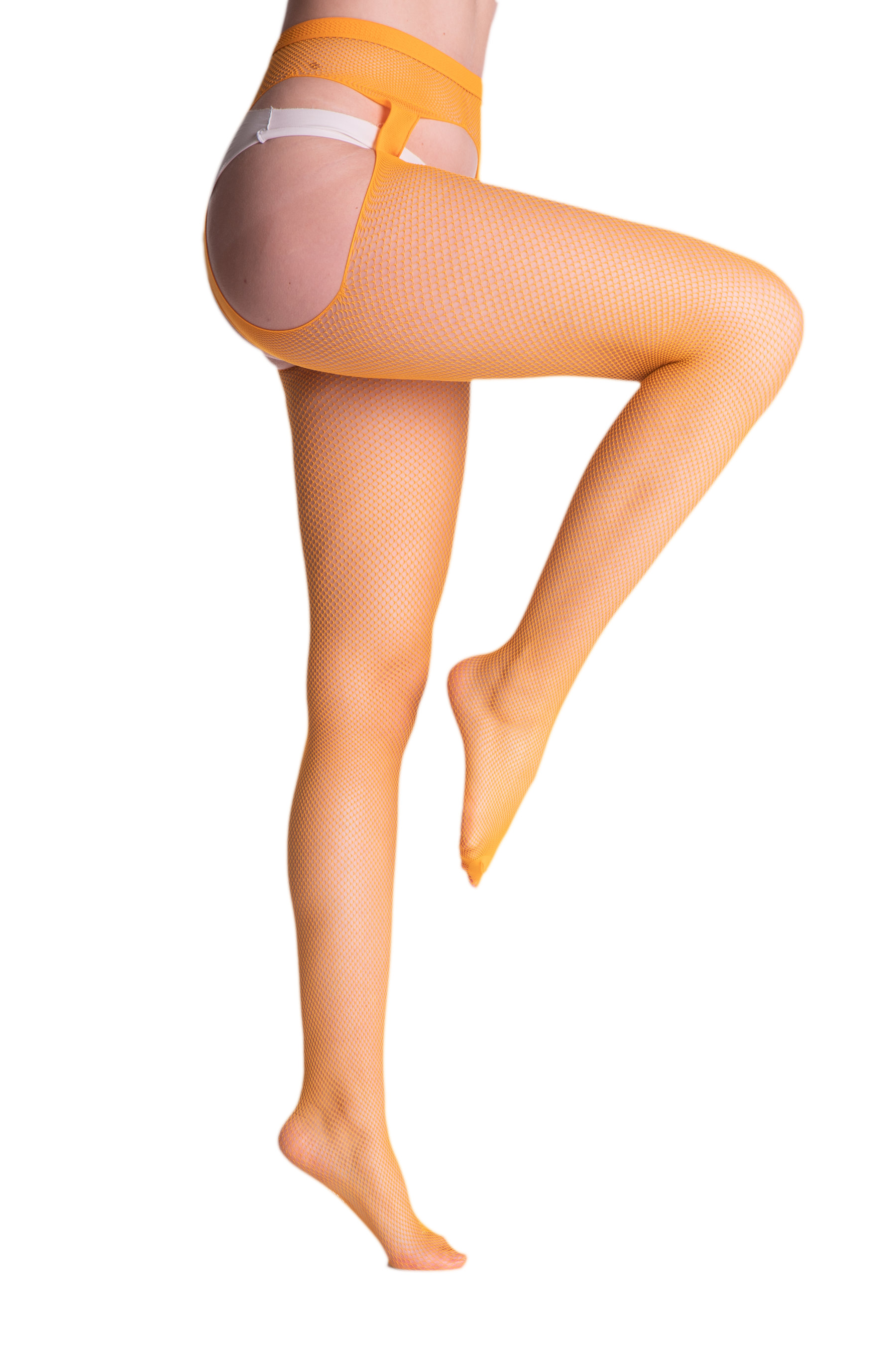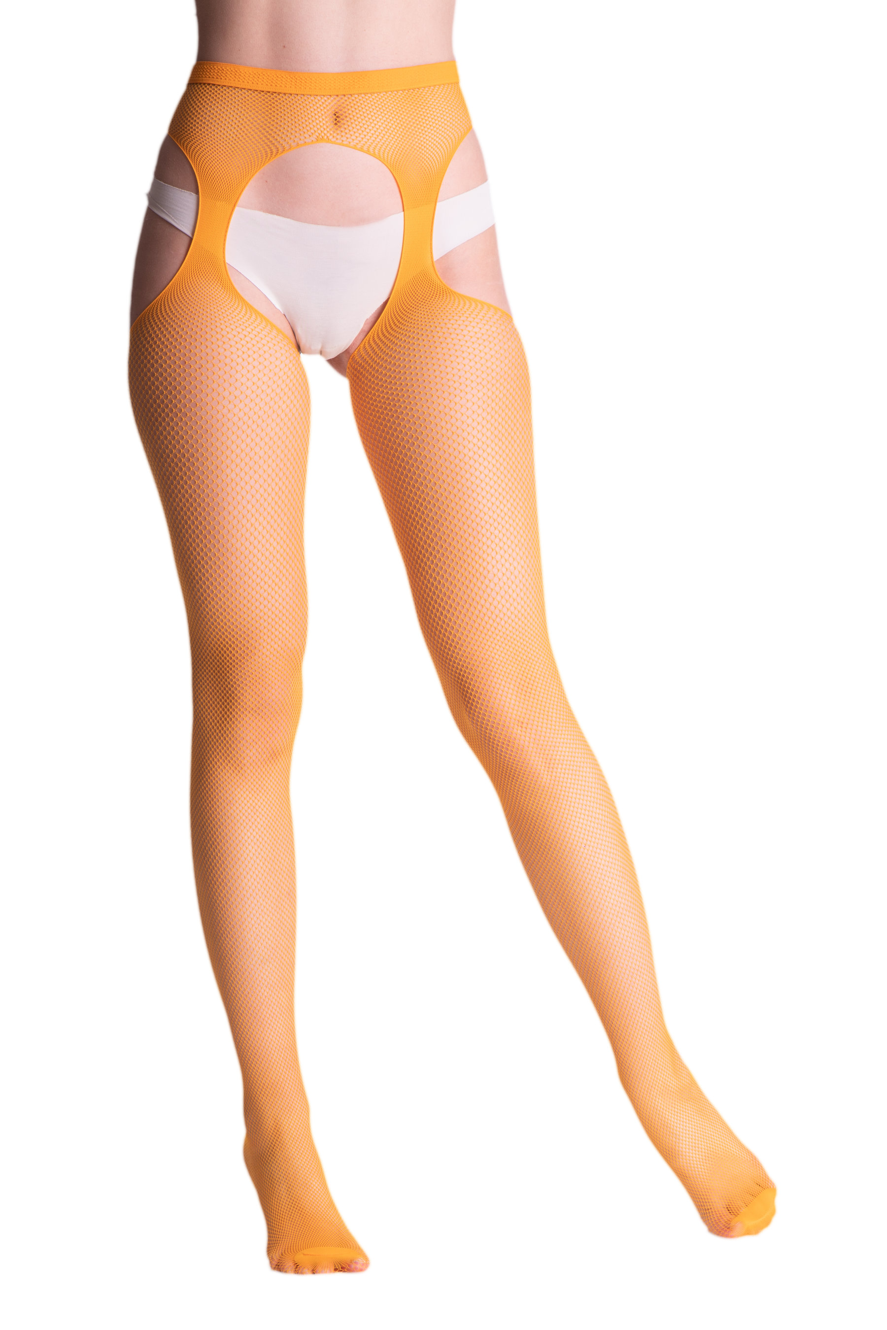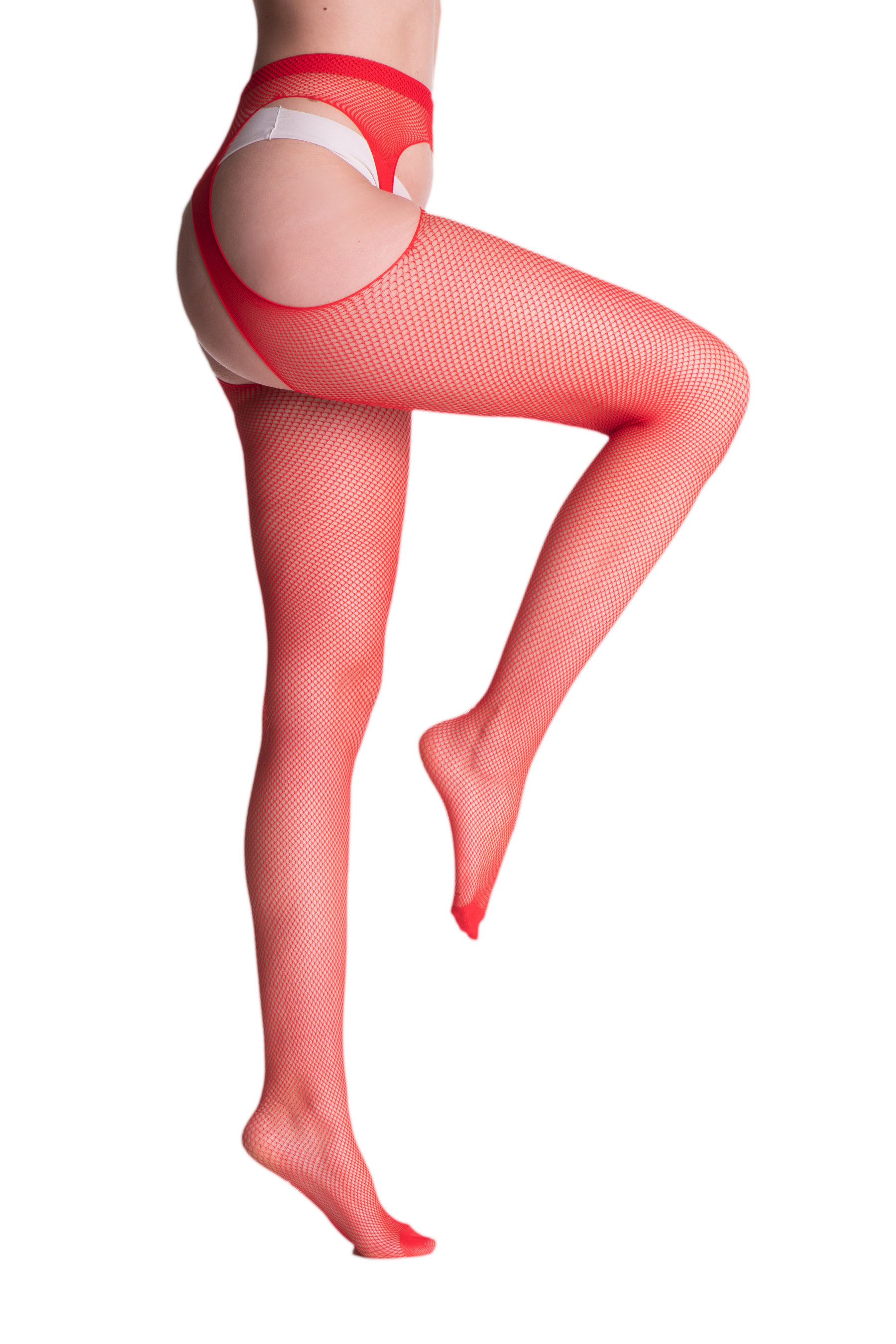 Sensuous fishnet suspender tights, very soft, with subtle reinforced toes. So comfortable and easy to wear as your everyday tights, and so seductive as stockings!